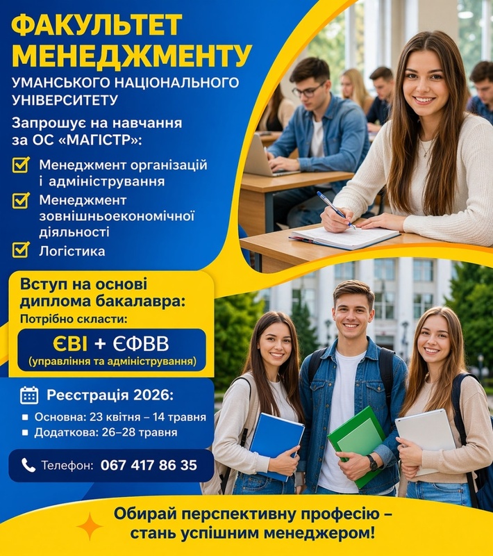 Факультет менеджменту Уманського національного університету – це простір можливостей для тих, хто хоче не просто отримати диплом, а стати фахівцем, який управляє процесами, командами та власним майбутнім.