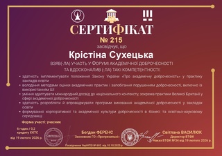 За результатами участі у форумі Крістіна Сухецька отримала сертифікат про підвищення кваліфікації.