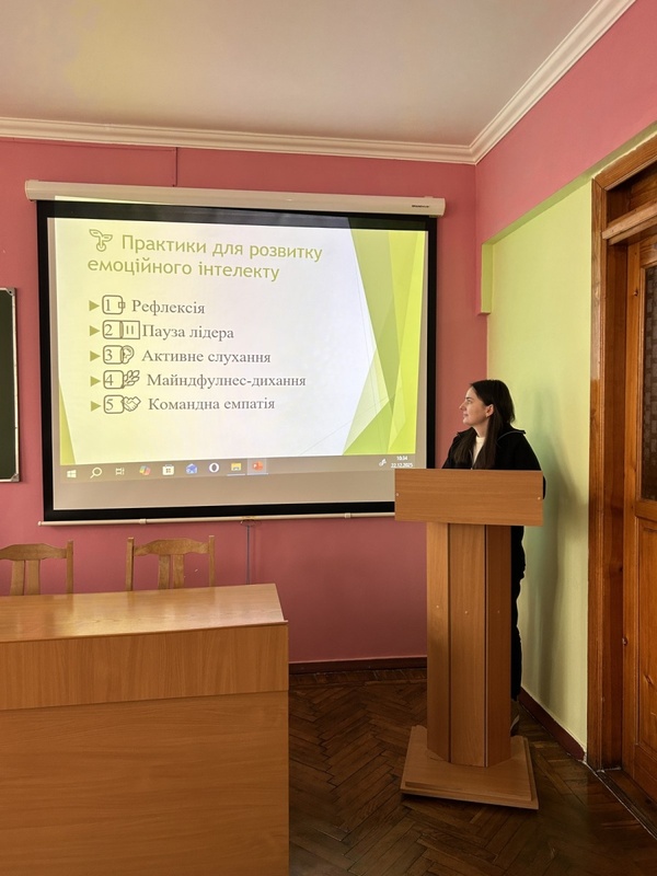 Практична частина заходу передбачала проведення діагностики рівня емоційного інтелекту учасників, аналіз отриманих результатів та їх інтерпретацію в контексті професійної діяльності. Учасники мали можливість оцінити власні емоційні компетентності, визначити індивідуальні особливості реагування у професійних ситуаціях та сформувати рекомендації щодо розвитку емоційної стійкості, ефективної комунікації та управлінської взаємодії.
