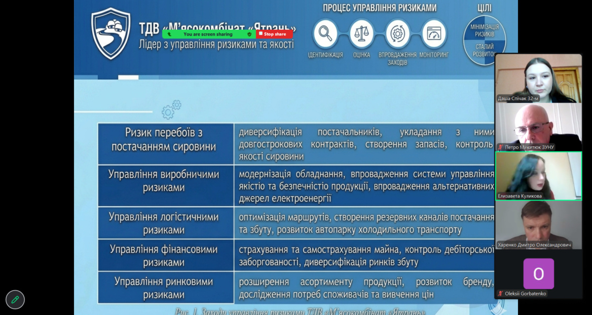 У секції з управління сталим розвитком підприємства студентка Дар’я СПІЧАК представила роботу на тему: «Управління ризиками як елемент економічної стійкості підприємства» (науковий керівник – к.е.н., доцент Юлія ХАЛАХУР).