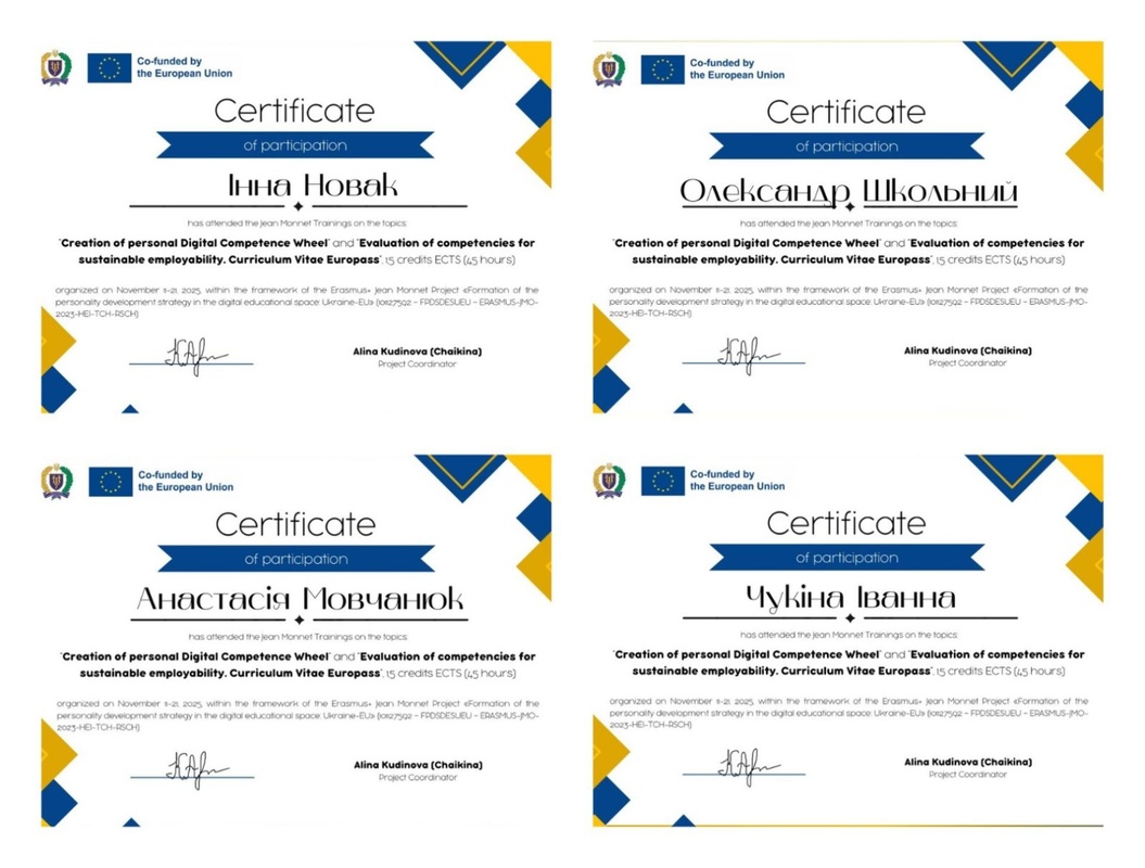 Науково-педагогічні працівники кафедри менеджменту Уманського національного університету взяли участь у серії тренінгів, проведених у межах модуля Еразмус+ Жан Моне «Формування стратегії розвитку особистості в цифровому освітньому просторі: Україна–ЄС».
